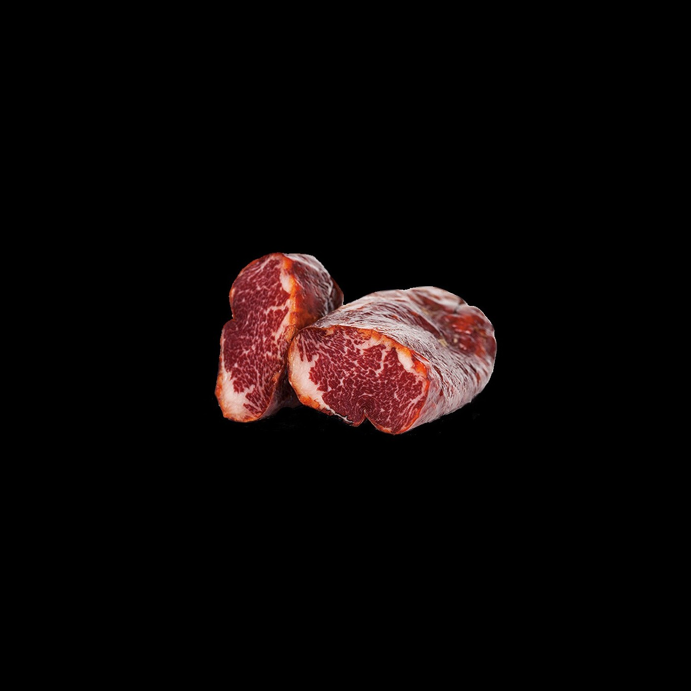 ELABORACIÓN: Maduración siempre en secadero natural durante un periodo mínimo entre uno y tres meses. Su curación con el añadido del mejor pimentón de la Vera le confiere de una textura infiltrada muy especial.